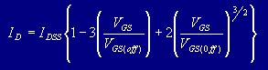 作为放大器的通常用法是VGS 、VGS (off) < 0(n沟道),VGS 、VGS (off) >0(p沟道)。式(10.4.1)用起来比较困难,多用近似的公式表示如下 |