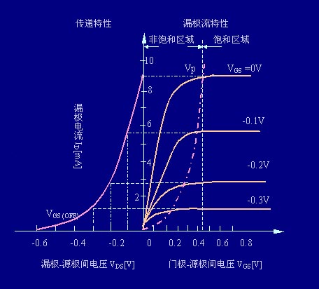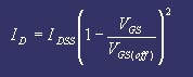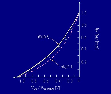 这个传输特性包括JFET本身的结构参数,例如沟道部分的杂质浓度和载体移动性,以致形状、尺寸等,作为很麻烦的解析结果可导出如下公式(公式的推导略去) |